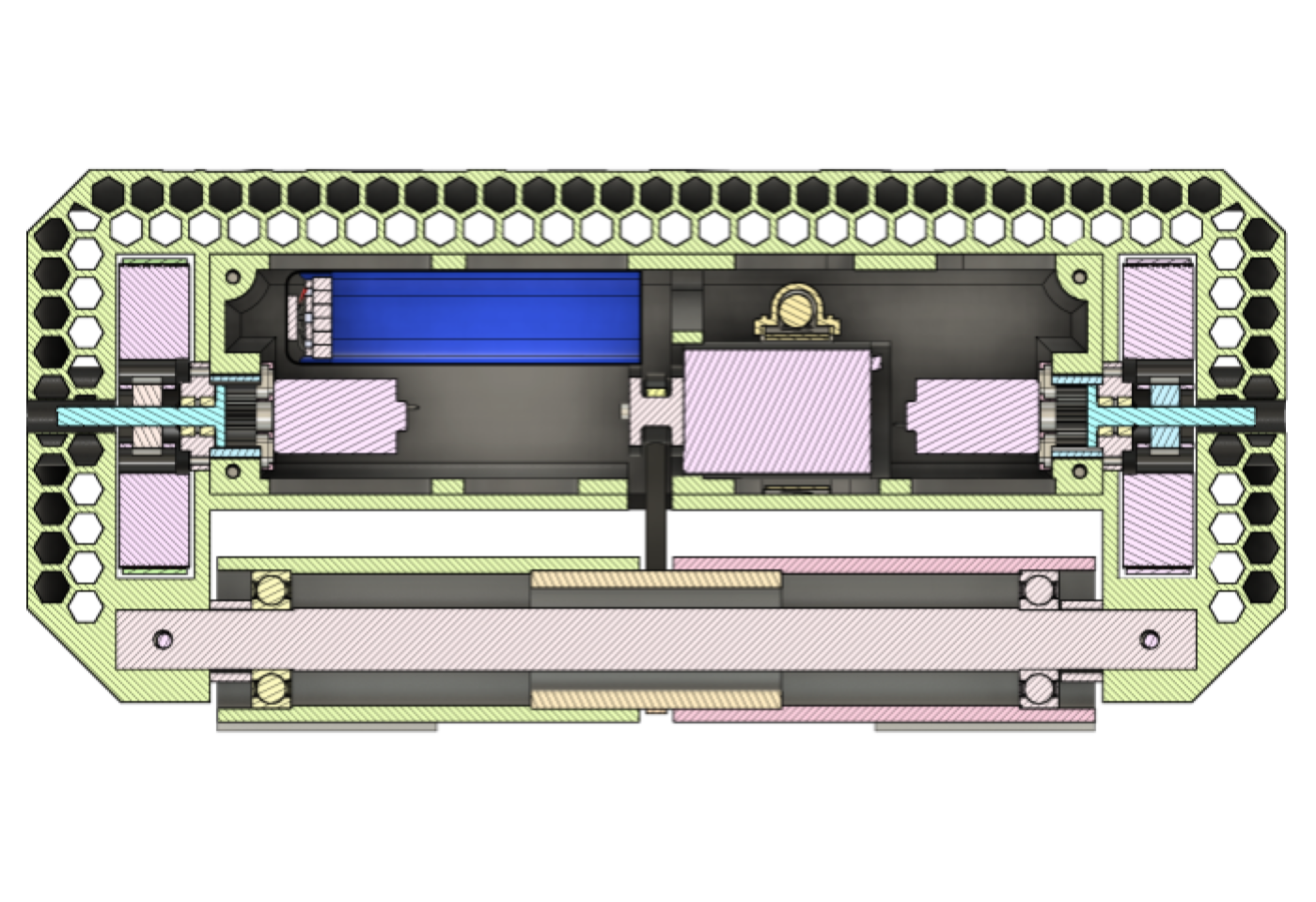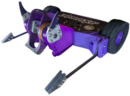 Hyphen was the first combat robot I ever built. This bot is competing in the 3-lb Beetleweight weight class and weighs in at exactly 3 lb. The weapon is a steel drum with an effective diameter of 45mm (~1.8in) and has a negative 8 degree rake (not good). The drum is 7 inches in length giving it one of the widest weapons in its weight class. Unfortunately, this massive weapon results in a horrible center of mass causing the bot to throw it’s rear end over the weapon and into it’s opponent on impacts. In addition to this, the bot suffered from a fatal design flaw that ended both of its first matches almost instantly. The inner frame was made of 3D printed PA6-CF (Carbon Fiber Nylon) and had both the top and bottom plates anchored into it. This serious oversight resulted in the entire inner frame shearing clean in half and spilling its insides out onto the arena floor. I got inspired to make such a large diameter weapon after seeing it implemented to great effect in the Battlebot Manta. Hyphen is named for its resemblance to the keyboard character of the same name. A vastly improved version of this bot is currently in the works, with an expected debut in late 2025.