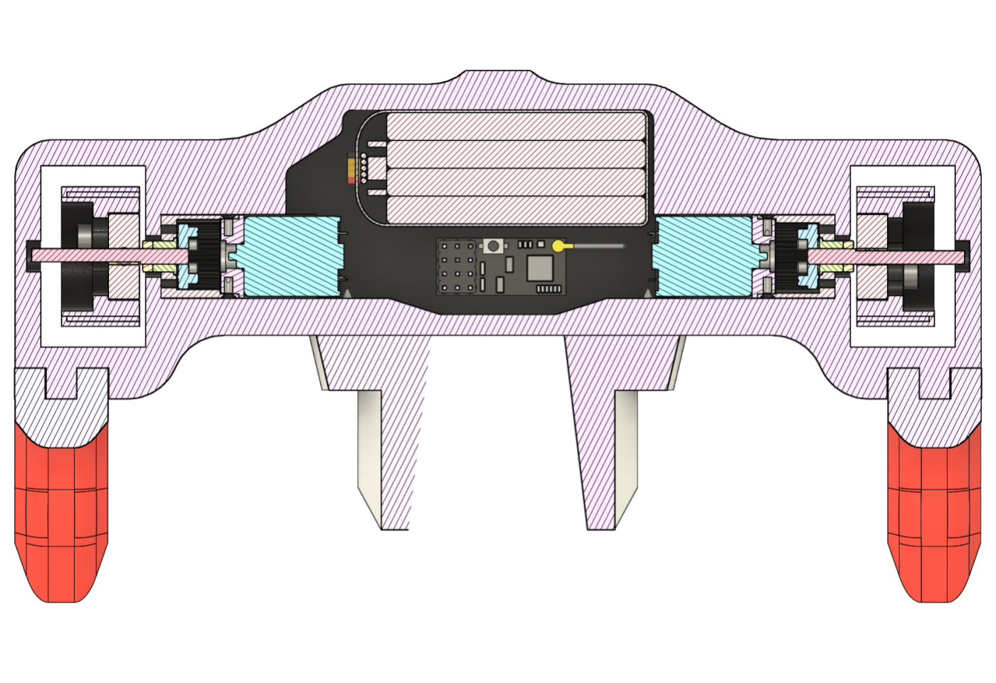 Zica is my first serious design for a 1 lb plastic robot. It underwent a rapid development process in the months following it’s initial creation, with Versions 2.0 and 2.1 resolving issues with the drive system. Zica’s weapon is a vertical spinner mounted to a hub motor. This means that the motor for its weapon is situated inside the weapon itself eliminating the need for belts that could snap. The bot plate is designed with a raised section printed out of transparent filament to allow the indicator lights from the drive ESC to shine through the top of the bot. These act as an excellent power indicator and visible way of identifying drive issues mid-fight. This is my first bot to feature cast wheels to great effect. Because of their exceptional performance on this bot, they will be adopted on all future wheeled bots moving forward. Zica was originally named Sica, after the the Roman short sword of the same name. Not long after it’s creation however it was discover that another bot had held this name for years, so it was adjusted to Zica out of respect for the other Bot.